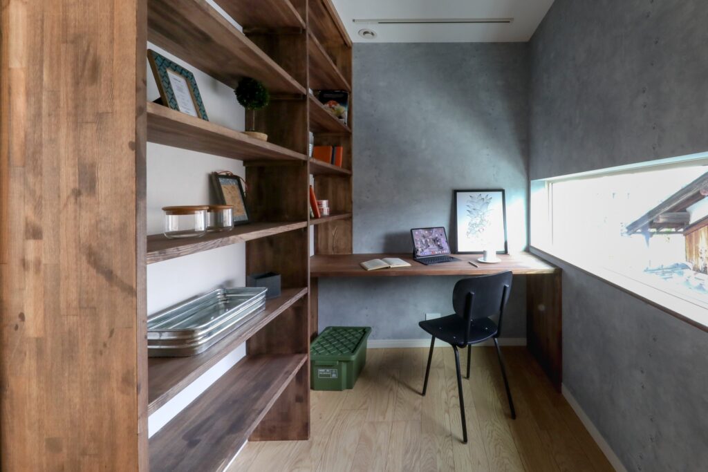 リモートでのお仕事が多いご夫婦のために設けた二つのワークスペース。